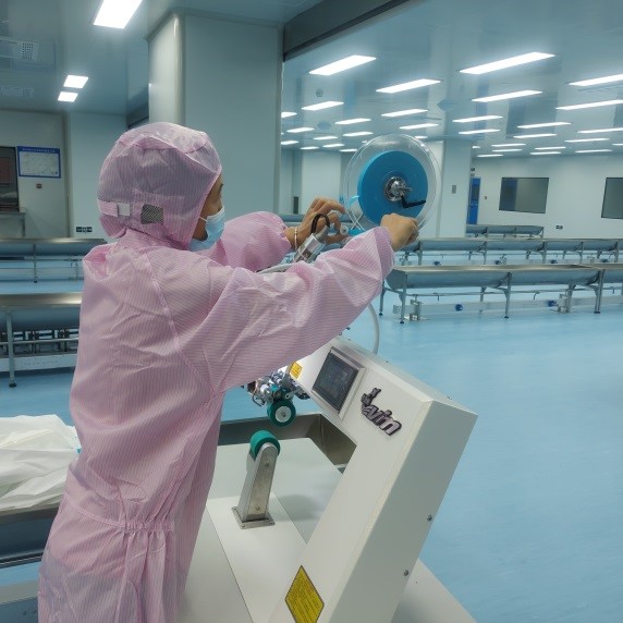 2020年7月7日,1200平10萬級潔凈車間開放投產。當天早上6:00,第一臺用于防護服生產機器進入無菌車間,經過基礎調試后,車間開始了緊張的生產,12分鐘后,第一件防護服正式下線。